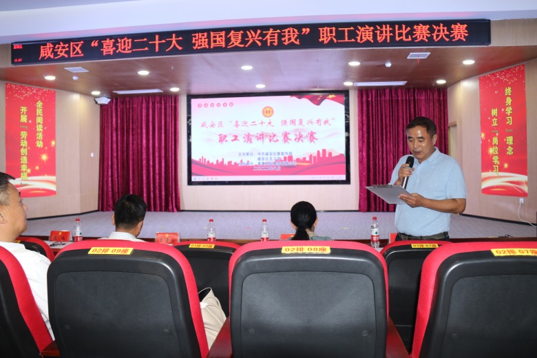 8月26日上午,由中共咸安區(qū)委宣傳部和咸安區(qū)總工會聯(lián)合舉辦的“喜迎二十大,強(qiáng)國復(fù)興有我”職工演講比賽決賽在真奧隆重舉行。